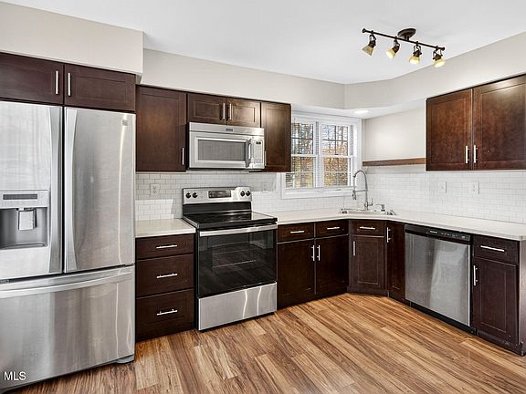 Excellent end-unit townhome in New Scotland Woods! Primary bedroom/full bath/laundry all on first floor. Vaulted living room ceiling with skylights, fireplace, and an open loft upstairs that can easily convert to a third bedroom. Private backyard with deck, attached two-car garage, and no HOA fees!