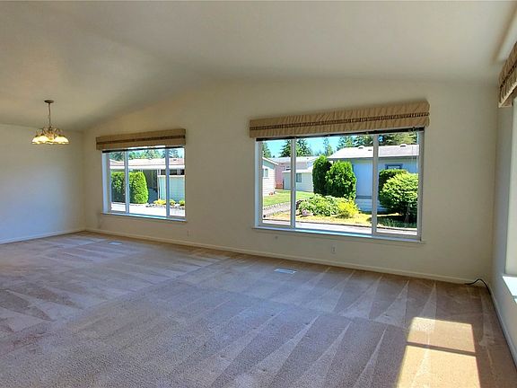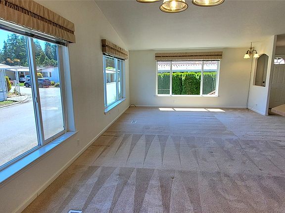 55+ Park. Lago de Plata in So. Everett. "2007" Double Wide home on greenbelt. Home features 2 bedrooms & 2 baths. French doors open to a EXTRA office or bonus space. Bright kitchen w/skylight and large walk in pantry. Living room & dining room. Primary bedroom has a full size walk in closet. Oversized primary bathroom has walk in linen closet, double vanities & step in shower. Separate utility room includes washer & Dryer. Reroof and new kitchen skylight 06/16/2021. Space rent $1,080. Carport parking. Updated landscaping. Professionally cleaned. Seasonal pool. Dog park. RV parking available for a extra fee. Subject to Park approval.