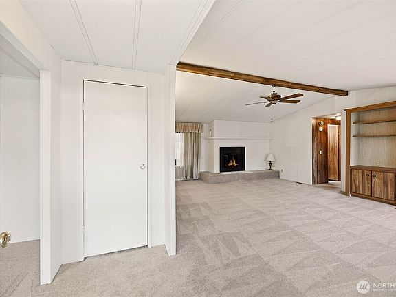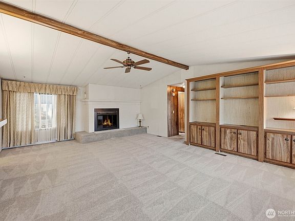 Welcome to this desirable 55+ community offering a relaxed, low-maintenance lifestyle. This spacious home features 2 beds plus an office, 2 full baths, dining room, and a large family room with a cozy fireplace—perfect for gatherings or quiet evenings at home. The home blends charming vintage details with thoughtful updates, including new carpet and vinyl flooring throughout.Step outside to a covered front deck, ideal for enjoying your morning coffee or chatting with neighbors. There’s also extra storage off the carport for added convenience. Enjoy great amenities, including a clubhouse and pool, while living close to public transit, grocery stores, and everyday conveniences. Bring your design ideas and make this charming home yours today!