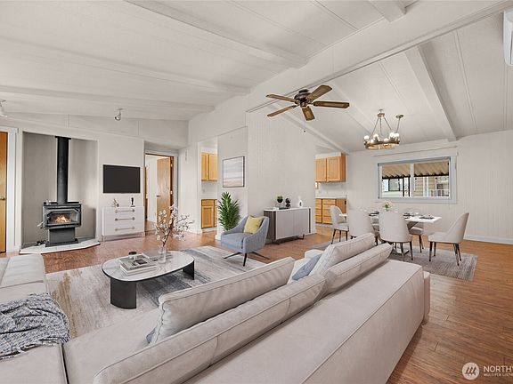 Landscaped yardOpen floor planCozy woodburning stoveEnclosed dog parkLots of natural lightCorner lot locationNewer laminate flooring