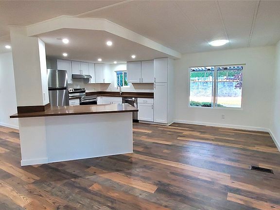 55+ Park. Lago de Plata So. Everett. Fully remodeled. 3 bedrooms, 2 baths plus 2 living rooms. Lg. double wide home on corner lot. NEW kitchen w/Stainless appliances & sink. NEW cabinets & quartz countertops. NEW bathrooms w/chair height toilets. Step in showers, countertops & tile work. Lg. primary suite w/walk in closet. Beautful attached primary bath. NEW roof, NEW skirting, NEW hot water tank, NEW plumbing, waterlines. NEW exterior & interior paint. NEW flooring wall to wall carpet & waterproof scratch resistant laminate plank flooring. NEW heat thermostat. NEW outlets, fixtures & switches. NEW exterior doors. Vinyl windows. Cedar back deck. Seasonal pool. Dog park. RV parking available for extra fee. Purchase subject to Park approval.
