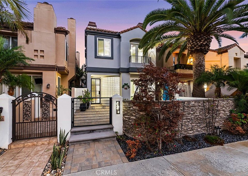 Sophisticated Coastal Living in Downtown Huntington Beach. Experience the epitome of luxury in this fully remodeled, highly upgraded, stunning Ocean Pointe residence, ideally located just five blocks from the sand and crashing surf in one of HB's most coveted and serene enclaves. Spanning over 2,750 square feet of light-filled interiors, this home offers an impressive blend of refined design, thoughtful functionality, and timeless elegance. Step inside to discover a beautifully updated home featuring dual primary suites and three bedrooms in total, each with its own spa-inspired, recently renovated en-suite bathrooms and custom closet built-ins. One of the primary suites has a glowing fireplace and balcony with French Doors. Enter into an open living and room with fireplace and French Doors opening to the outdoor patio for alfresco dining. The separate, inviting family room adjacent to the kitchen that showcases a custom fireplace with new surround and bespoke built-ins, creating the perfect space for gathering and relaxation. The chef’s kitchen is a masterpiece—complete with an expansive quartz waterfall island, new designer backsplash, custom cabinetry, walk-in pantry, and professional-grade stainless steel appliances from Wolf and Sub Zero. Every detail has been considered, from the artisanal staircase railing to the custom lighting, dual-pane windows, motorized window coverings, and wide-plank wood-look porcelain flooring throughout. Modern conveniences include ductless AC with individual room controls, a tankless water heater, and a spacious upstairs laundry room. Enjoy seamless indoor-outdoor living with a professionally designed front patio featuring custom hardscape, lush landscaping, and designer lighting. A private third-level deck offers the perfect retreat for sunbathing or adding a spa for ultimate relaxation. The immaculate garage offers new epoxy flooring, EV charger, cabinets, overhead storage and glass garage door. There is a driveway in the rear to park an additional car. Nestled in a quiet location yet just moments from the beach, Pacific City, award-winning schools, the pier, and vibrant downtown dining and entertainment—this is the perfect balance of luxury and coastal lifestyle. Immaculate and meticulously maintained - Turn-key ready for the next lucky owners!