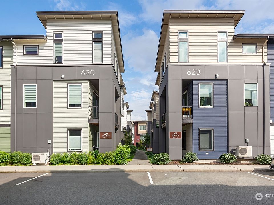 Beautiful like-new townhome in the popular Urbane Village community built by Pulte. This modern home features open-concept living on the 2nd floor with a chef's kitchen, eating bar, pantry & SS appliances. Kitchen opens to the living room, dining room, powder bath and balcony. Top floor features a luxurious primary suite w/AC, guest BR/bath, laundry and an open office space. Entry floor has guest BR & bath plus 2 car garage. Other features include: mini-split AC, EV-ready charging, Cat6/RG6 wiring, WIFI garage door. Low HOA dues cover exterior window cleaning, landscape maintenance, snow removal, road mtce & roof cleaning. Top-rated Northshore schools. Quick access to Canyon Park, downtown Bothell and the freeway.