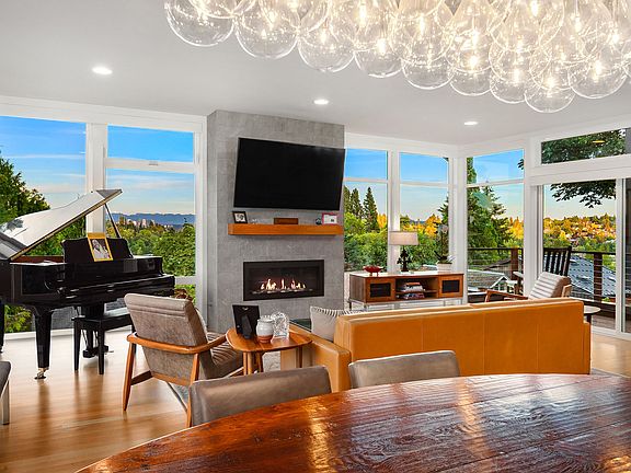 Living Modern in Madison Valley. Uncompromising design & sublime luxury merge in this home. Walls of windows frame stunning treehouse views w/ downtown Bellevue in the backdrop. Enormous roof deck affords opulent entertaining space. Open living room and kitchen concept, top of the line appliances, chef's dream pantry, waterfall quartz counters. Tesla hookup in garage. Work from home in main level office w/ garden view. Primary BR w/ 2 walk-in closets, designer bath/shower w/ views of Bellevue.