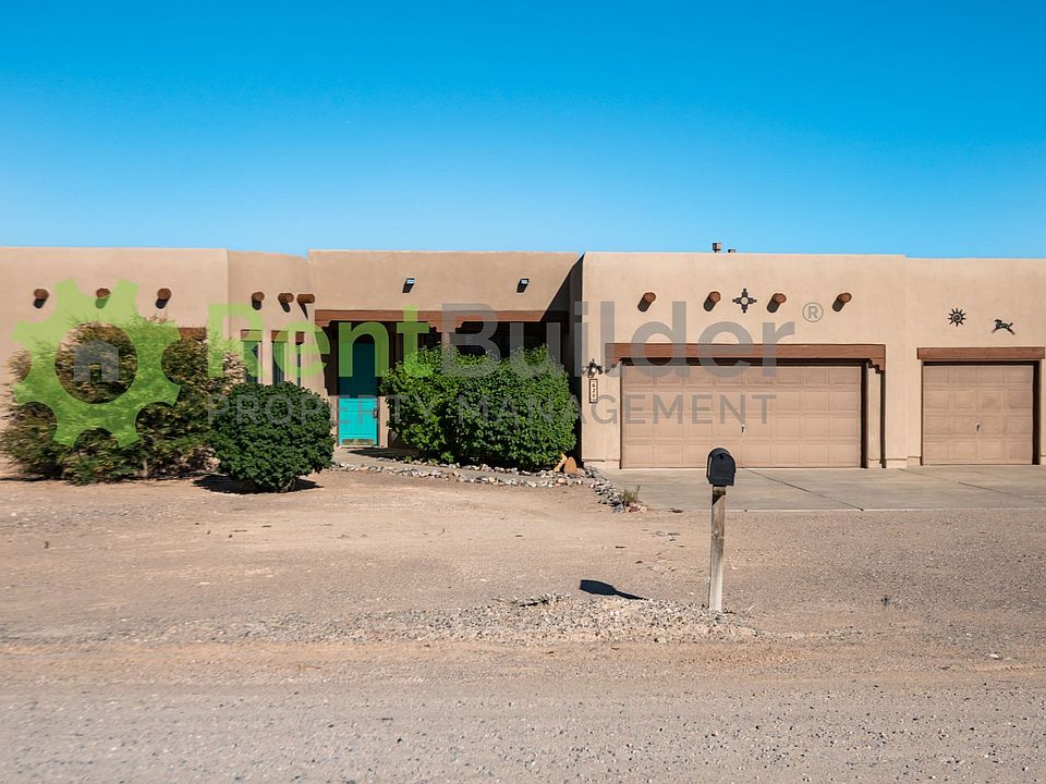 Welcome to this custom home in Rio Rancho! This home boasts 4 spacious bedrooms, including a separate guest room or office, and 3 full bathrooms. With 2464 square feet of living space, this home offers plenty of room to live, work, and play. The interior features 9-foot ceilings, beautiful wood beams, and ceramic tile flooring, adding a touch of elegance to the home. The central refrigerated air and gas fireplace ensure comfort in every season. The kitchen opens to a covered patio, perfect for enjoying the gorgeous mountain views. The property sits on a generous 1/2 acre lot with easy-care natural landscaping. A 3-car garage provides ample storage and parking space. This home is pet-friendly, welcoming one small dog up to 25 lbs. Don't miss this opportunity to experience the best of Rio Rancho living! Please review all photos and website for additional fees associated with this property and our pet and tenant policies prior to submitting your application.