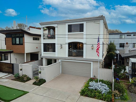 Fully Furnished. (Long term lease unfurnished, if desired.) AC installed March 2024! Family, pet, and work friendly, this spacious home has 4 bedrooms (one of which is also an office,) and 2.5 bathrooms. 3 blocks to Center beach, 4 blocks to restaurants and shops. Two large balconies that are great for both waking up with a morning cup of coffee, and winding down with a glass of wine in the evening. The SD skyline is beautiful from the 3rd floor balcony. Built in Putting green. BBQ off kitchen balcony, and outdoor dining in courtyard. Rooms are large, closets are large, kitchen fully appointed. 2 car garage. Beach accessories included.