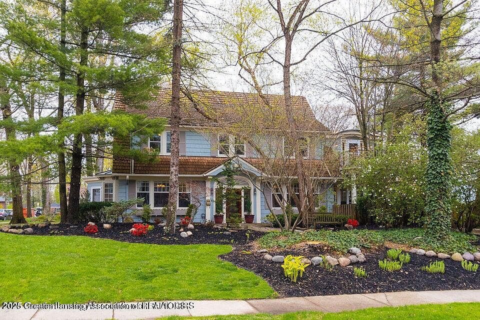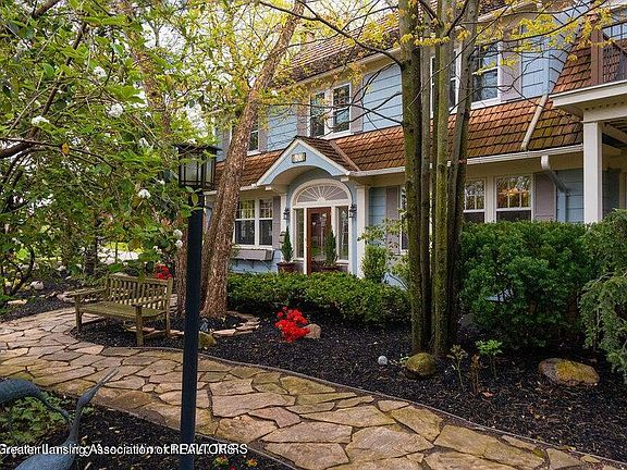 East Lansing ~ Ohhhh my, nestled in the heart of the highly sought after Glencairn neighborhood; this landmark home that turns 100 in 2026, on the corner of Wildwood and Ardson is now available. Words can hardly describe this 1926 Dutch colonial manor home nestled on two lots that was fully sealed and painted in 2023, boasting 5/6 bedrooms, 4 full and two half baths with over 6,795 sq. ft. of living space including 5,146 sq. ft. above grade. The meandering 200-year-old stone wall front walkway paves an enchanting way to this well-cared for gem of a home! Bye gone era charm exudes from every room with fabulous, updated amenities throughout. The breathtaking foyer with a sweeping staircase, formal living room including a bay window alcove that is straight out of a designer's magazine, original arched French doors and built-in corner hutches makes this a room to remember. The formal dining room includes 9' ceilings, spectacular crown molding, an inviting hearth room next to the fireplace with an antique Oak mantel, stunning panel molding and built-ins from the original Muskegon courthouse adds a unique touch to the expansive space, highlighted with gleaming original hardwood floors. Enjoy the access to the stunning four-season sunroom and oversized space complete with porch paneling straight out of a magazine and includes access to the side courtyard with a hot tub! The over-the-top gourmet kitchen includes stunning custom cabinetry, 9' ceilings, granite countertops, tile backsplash, center island work center, eating bar, prep sink and a large porcelain farmers sink; appliances included a 5-burner gas range, newer trash compactor, newer cooktop, and three ovens, plenty of room for many cooks' prep! Quaint breakfast room nestled with a bank of transom windows plus access to the mud room with heated tile flooring. a first-floor laundry and pantry all nestled in the fabulous breezeway that attaches to the 2+ car garage, note the extra-long driveway (a rare find)! The hearth room is anchored by a stone-faced gas fireplace, 2 skylights and accented with stacked windows and is a great family living space. The back hall makes the way to the perfect private area in the outstanding library/guest bedroom, complete with a full bath, a spectacular ceramic shower, walk-in closet, plus a dramatic bay of windows overlooking the pretty street of Wildwood. Storage galore with fabulous niches, built-ins, chair-rail, crown molding and closets at almost every glance. A second-floor mezzanine gives the way to the primary suite that never seems to end, accented with a pretty eyebrow window and a private balcony (deck was rebuilt in 2023) off the sleeping quarters to enjoy amazing sunsets, built in wardrobes and closet. The spa bath is decadent and an oasis of its own, heated ceramic tile, shower, whirlpool tub, double sinks and separate toilet room. Three more generous-sized bedrooms, one with a window seat and built-in desk (deck was rebuilt in 2023) with a sitting area plus a private balcony and one with a dormer window all are oversized with a quaint & charming full bath. The third-floor attic is fabulous with a fifth bedroom, full bath, study area and more. If all of this is not enough the finished rec room, full wet bar, ½ bath, possible bedroom including an egress window, game space, fireplace, custom-built tool room, plus loads of storage should do it! Fabulous flowers and plantings. Newer upgrades. Take your place in history! Walk to MSU, downtown, shopping, eateries and close proximity to highways. The Glencairn lifestyle is a way of life with canopies of trees, sidewalks, streetlights and a home of comparable quality that will always be adored.