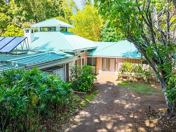 Welcome to your ultra-private, gated sustainable tropical paradise at 620 Awalau Road, Haiku! Nestled on two beautifully landscaped acres, this charming home is a haven of serenity and wonder. Enjoy the bounty of organic fruit trees and a peaceful lily pond with captivating ocean, mountain, and valley views. The main house offers a spacious 2,787 square feet of living area, featuring three delightful bedrooms and two bathrooms. A stunning lava rock fireplace graces the Great Room, which, along with cork-underlay hardwood floors, is perfect for yoga or dance enthusiasts. The Primary Suite, boasting a separate entrance, a luxuriously remodeled bath, and kitchenette sets a tone of elegance and convenience. Unleash your creativity in the dedicated octagonal art studio, equipped with a covered lanai, bathroom and a bonus outdoor shower. With a second studio poised for artistic endeavors, the possibilities are endless! Imagine future gatherings on the large lanai or adding a charming cottage, with breathtaking views of the expansive gulch and ocean. This Haiku gem is complete with a garage, plenty of additional parking and conveniently close to Makawao, Haiku and Paia towns. Embrace tranquility and creativity in your new home!