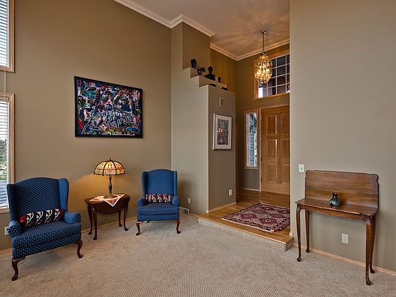 Edgemoor view home. 3390 sf , 4 br, 3.5 bath, nearly 1/2 acre lot. Main floor features open plan, eat-in kitchen with top new appliances, family room, formal living and dining, wet bar, view office and new carpet. Master suite and two bedrooms on 2nd floor. Walk-out basement includes guest suite with 2nd family room and library or wine cellar. Lifetime roof, 3 fireplaces, fully landscaped, deck, hot tub, fruit trees and outdoor studio or playhouse.