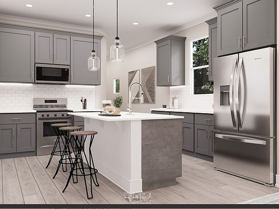 Spacious loftStainless steel appliancesChrome faucetsTile backsplashBeautiful burlap cabinetsQuartz countertopsRaised double bowl vanities