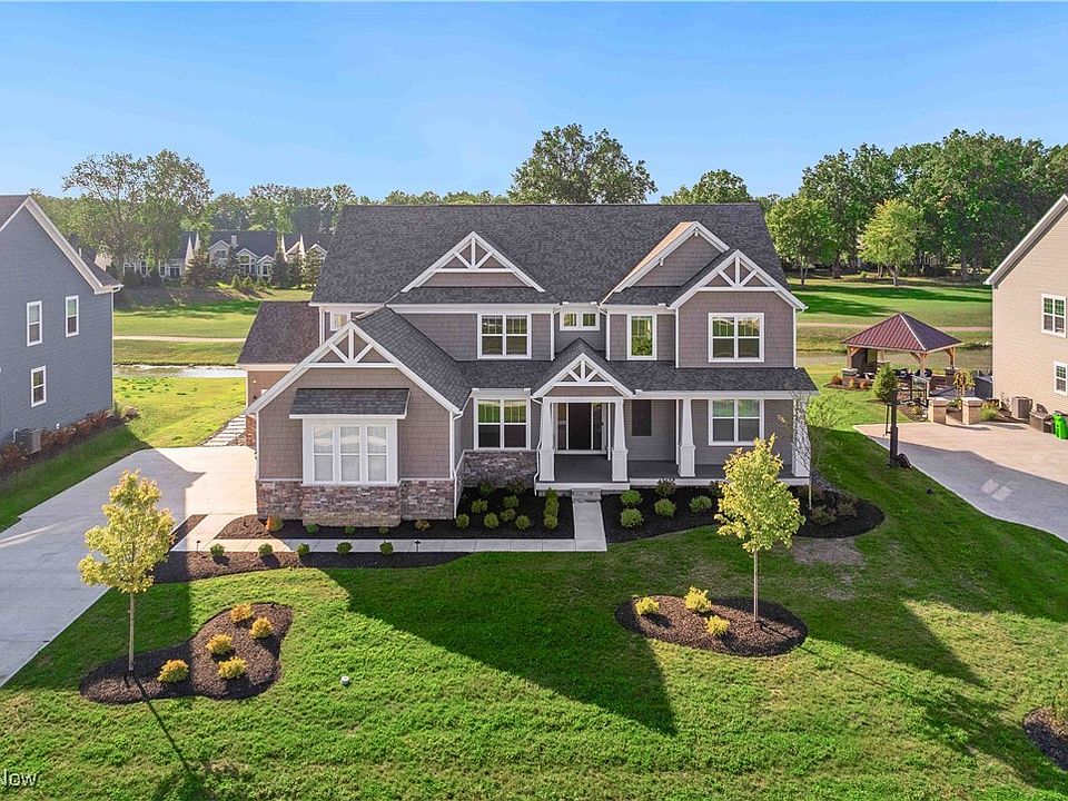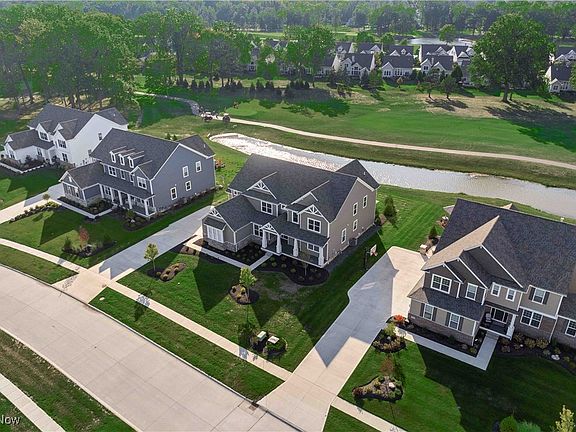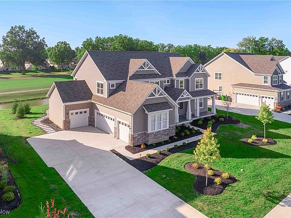 No need to build—welcome to the Skyview plan, thoughtfully designed to impress with its wide-open, light-filled layout and custom finishes throughout. Perfectly situated in the premier golf course community of Legacy Isle in Avon Lake, this home rests along the pristine 3rd hole, showcasing serene views of the pond, golf course, and wooded backdrop. The gourmet kitchen is a chef’s dream, featuring adjustable soft-close cabinetry with rollouts, hidden trash storage, double ovens, and quartz countertops. Entertaining flows seamlessly with luxury plank flooring, soaring 9’ ceilings, and thoughtfully designed gathering spaces. The main level also includes a spacious laundry and pantry area, a versatile office/living room, a planning center, and an oversized formal dining room perfect for hosting. Upstairs, the grand owner’s suite offers a retreat area, walk-in closet, and spa-inspired bath with custom details. Three additional bedrooms each include their own walk-in closet and attached bath, along with a versatile loft/game room. The fully finished basement provides exceptional additional living space with a full bath, dedicated craft room, and ample storage. Outdoor living shines with a covered porch, paver patios, built-in gas fire pit, and professional uplighting—all overlooking the pond and golf course for a truly serene setting. Additional highlights include a 4-car side-entry garage with a separate carriage bay, plus walking-distance access to the pool, clubhouse, golf course, and restaurant.