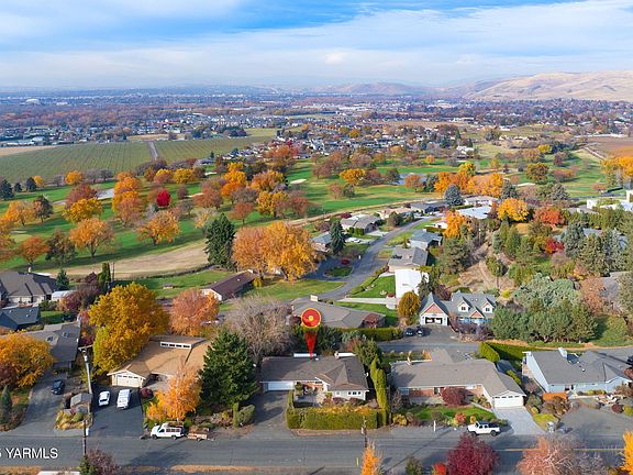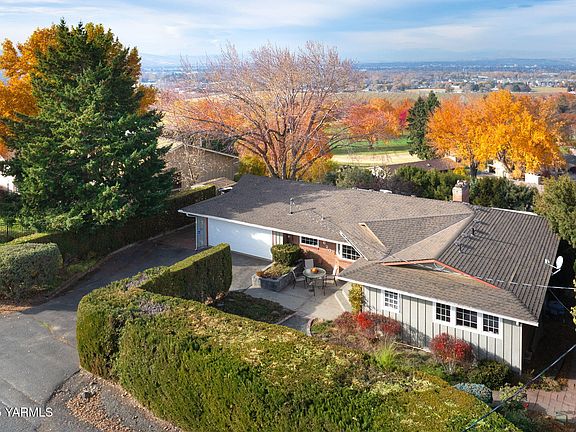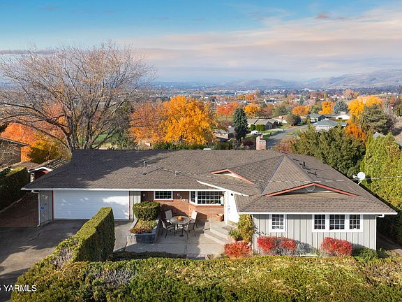 YAKIMA COUNTRY CLUB proudly offers a beautifully appointed 4-bed, 3-bath home underscoring timeless design and effortless golf-course living! Situated within a short golf-cart ride to the 1st tee box, the home features a spacious deck capturing PANORAMIC VIEWS of the Mountains and City Lights. Designed for convenient main-floor living, the home features two cozy fireplaces, (laundry on both main level and daylight basement) while the primary bedroom boasts a private ensuite retreat created for both comfort and ease. Natural light streams through generous windows brightening the open-concept kitchen and living area where warm hardwood floors carry throughout the main level and hallway. The front garden is enclosed by neatly trimmed hedges, offering both privacy and charm while enhancing the home's curb appeal. A versatile fourth bedroom currently serves as a workshop, offering flexibility for creative or practical use. With a NEWER ROOF and tasteful updates, this home embodies the Country Club lifestyle -- refined, relaxed, and refreshingly within reach!