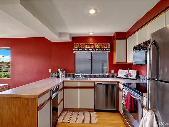 Tastefully updated end unit in the heart of downtown Edmonds! Enjoy this southfacing home adjacent to the park w/newer laminate wood flooring & baseboards thru-out, updated baths w/tile flooring/counters & fixtures, kitchen has tile backsplash & SS appliances, light filled living room w/charming wood burning fireplace, large master suite w/views of the park, oversized garage w/add'l parking spaces, amazing location w/5 minute walk to downtown shops, enjoy 4th of July fireworks from your deck!