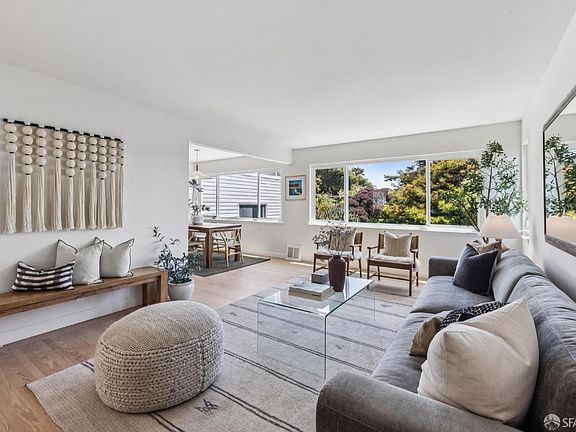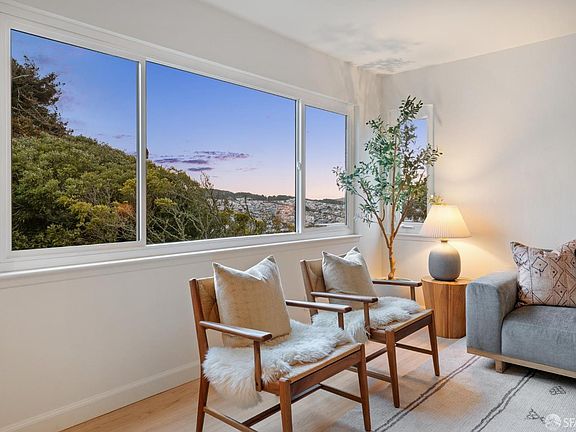 This lovely Sunnyside mid-century home features an open layout, gorgeous views, spacious backyard, 2 bedrooms, 2 bathrooms, bonus room, and garage. Detached on three sides & filled w/ light, this turnkey home is a tranquil haven in a convenient location. Welcoming living room & adjacent dining room w/ large bank of windows offering sweeping views. Stylish kitchen w/ ssl appls, quartz counters, tile backsplash & painted wood cabinets. With refinished wood floors, the main level includes 2 comfortable BDs plus full BA w/ shower over bathtub. Lower level includes a bonus room ideal for 3rd BD, office, or media room, plus full BA, laundry area & access to backyard. The verdant & tranquil backyard is a serene outdoor living space w/ brick patio & walkways surrounded by abundant florals & mature plantings. 1 car garage w/ interior access & storage. Peaceful Sunnyside location above Detroit Street steps w/ city life moments away & a short distance from Glen Park Village. Convenient freeway access & nearby Glen Park BART for easy commuting. Moments from Sunnyside Playground, Dorothy Erskine Park, Sunnyside Conservatory, Glen Canyon Park & Mt. Davidson. With its desirable location, ample natural light & gorgeous views, this appealing home offers an idyllic city lifestyle.