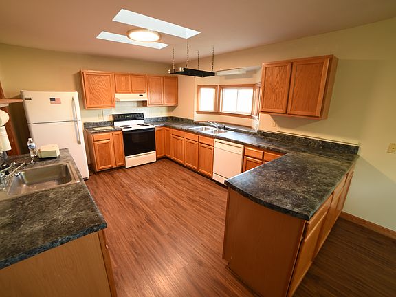 Brick ranch homeOne car garageSpacious kitchenRear deck overlooking pondFull basement