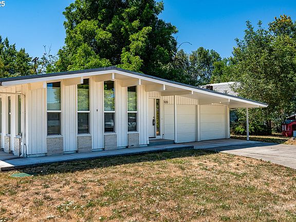 Great SE Eugene location! This remodeled NW Mid century modern features 2 bedrooms, 2 full bath with vaulted ceilings. Loads of custom built-ins. Property to east is owned by City of Eugene and is parkland. Large fenced back yard. Double car garage with overhead door to back yard. All new cadet heaters and new wood laminate flooring. Recent full house inspection on file.