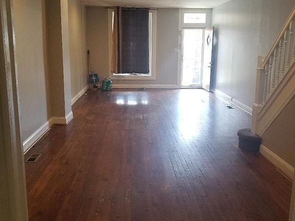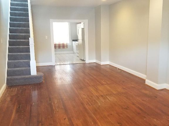 Extra Spacious Home with Large Living Room and Dining area. Hardwood Floors in Living Room and Carpet Upstairs. Parking pad in back. Unfinished basement