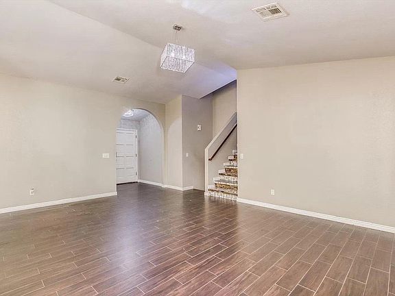 This home features a bright, open living area that connects to the dining room and kitchen. The kitchen includes modern appliances, plenty of storage, and a center island.