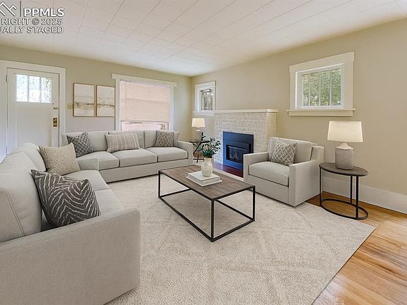 Located on a picturesque, tree-lined street, in the heart of Patty Jewett, this beautifully updated 1920's bungalow offers timeless character, thoughtful upgrades and prime location just minutes from downtown, golf, shopping, restaurants & schools*Private & fenced yard with mature landscape, a large storage shed (could be converted to a garage) & an extended driveway offers ample off street parking*Bright & sunny home features open concept & efficient floor plan*Step through the charming covered front porch into a warm & inviting living space featuring hardwood floors & anchored by a gas log fireplace - perfect for cozy Colorado evenings. Sunny dining area situated between the kitchen & living room*Kitchen with ample cabinet space, hardwood floors & walkout to backyard*Home offers two main level bedrooms that share a renovated full bath with a claw foot tub*Sun room in rear of home is a multi-functional space is a perfect office, studio, or 3rd bedroom*Laundry in basement*Sweat equity opportunity - finish the basement and add a 3rd bedroom, guest suite or second family room. Storage closet*Walkable to parks, coffee shops & some of the city's most beloved amenities, this is a rare opportunity to own a home in one of Colorado Springs' most historic and sought after neighborhoods*Newer electric panel, vinyl siding, insulation added to walls & ceilings in sunroom