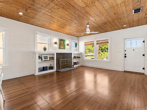 Discover 1920s cottage vibe and modern charm in this beautifully updated one-story home tucked in the heart of Tobin Hill, one of San Antonio's most vibrant and walkable neighborhoods. This move-in-ready gem features warm wood flooring, designer touches, abundant natural light, and a striking brick wood-burning fireplace that anchors the living space. The thoughtfully updated kitchen showcases custom sliding-drawer cabinetry, while the bath features a classic claw-foot tub. Additional highlights include a Kinetico water softener, freshly painted exterior, and well-appointed storage. The xeriscape yard provides low-maintenance outdoor living with charming curb appeal, complemented by a versatile outbuilding perfect for a workshop or additional storage. Just blocks from the Pearl and Museum Reach and minutes from Trinity University, San Pedro corridor and downtown, this location offers unmatched access to dining, arts, and entertainment. Enjoy the energy of urban living within a strong community setting where historic character and modern conveniences meet. Don't miss this rare opportunity in one of San Antonio's most coveted neighborhoods!