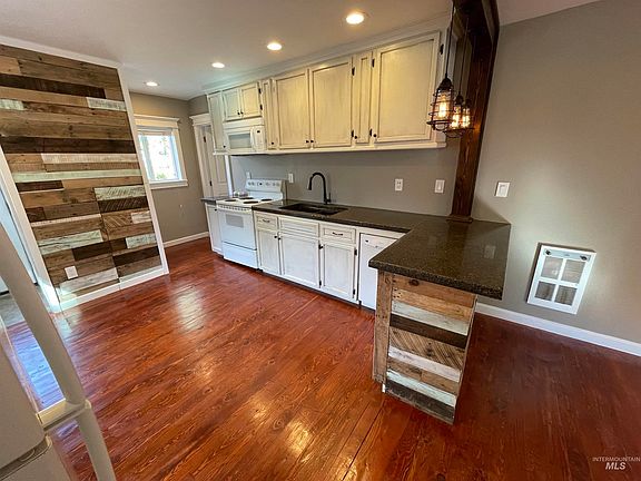Don't miss out on this fully remodeled home in Potlatch. This home has been remodeled with new plumbing, wiring, insulation and sheetrock. The kitchen has concrete counter tops sitting on wonderful cabinets that offer plenty of storage space. Beautiful red fir hardwood floors have been refinished throughout the home. This home features an electric tankless water heater. The large back yard offers a garden space, a chicken coop and access to the 1 car garage/shop along with access to the alley and parking space for a couple of vehicles. All of this on a fully fence lot located just a short distance to the elemenary school and play field and playground.