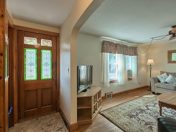 Charming cape ready for new owner! Updated with solar panels and new windows for energy savings, this home also retains it's character with original woodworking, stained glass doors, and glass door knobs. Truly a warm and inviting property. First floor features large eat-in kitchen with pantry, 3 season porch overlooking great back yard, large living room with stained glass windows, master bedroom and 4th bedroom or office/den. 2nd floor has two more large bedrooms. Hardwoods throughout except foyer, hallway, and bathroom which are grouted vinyl. Huge private back yard with patio, just perfect for relaxing or entertaining, a secret hide away. Great location, convenient to area amenities and commuting routes.