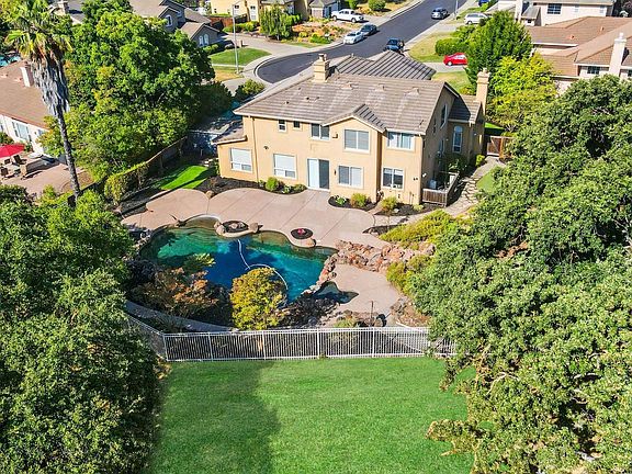 Exceptional and Exquisite! This home is located at the end of a tranquil cul-de-sac in Bent Creek Hills, one of San Ramon's most coveted neighborhoods. Large 18,000 sq ft lot backs to open space with hill views - so private & tranquil. The resort backyard has black bottom pebble tech pool surrounded by natural rock with a flowing waterfall – it's like being on vacation every day! The large yard features a putting green, artificial turf and is gracefully canopied by a majestic oak tree. On the side yard sets an accessory building with wood flooring and is a great location for office or private retreat. This is truly a one-of-a-kind property. The ideal floorplan features 5 bedrooms and 3.5 bathrooms. There is a private bedroom and bathroom suite downstairs and 4 bedrooms upstairs. The kitchen flows into the large great room which provides for wonderful family living and overlooks the stunning backyard. The kitchen has custom wood cabinets, center island, granite countertops, built in wine refrigerator and high end appliances. Features include a grand entry, soaring ceilings, formal living & dining rooms with custom wood shutters and custom wood & wrought iron banister. A stone's throw to serene walking/running trails & parks! Easy Fwy & Bart Access- This is your dream home!!