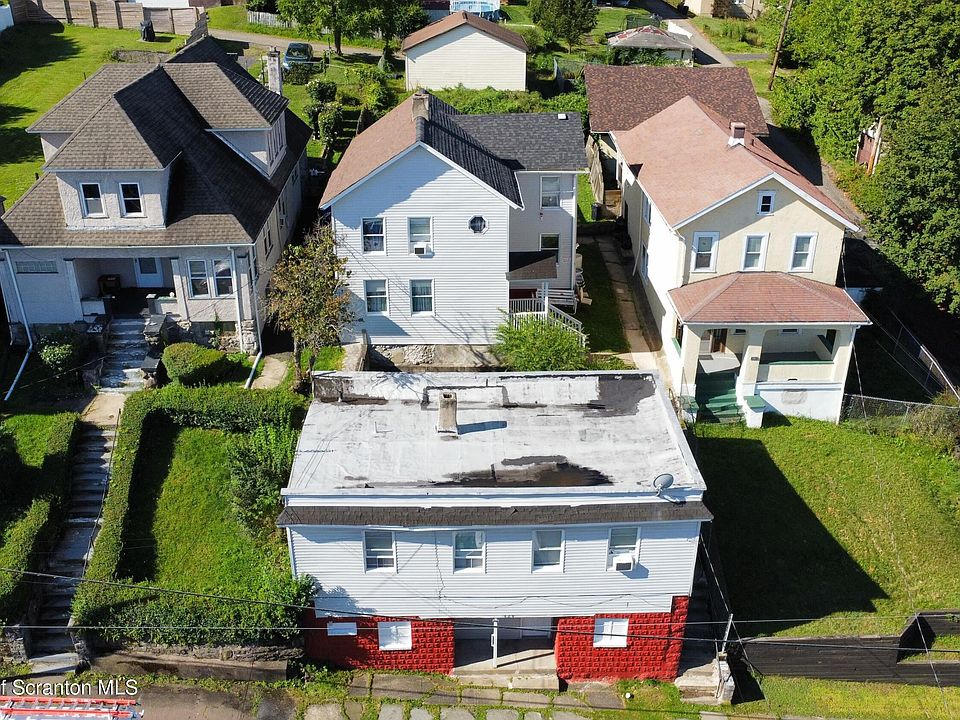 South Side Scranton 3-unit investment opportunity with 2 buildings: front has above-ground basement and 2-bed/1-bath upstairs apartment, back has 2 units (2-bed/1-bath each) currently used as one but easily converted back, features on-street parking, separate electric and gas, one water meter, new roof on back building in 2022, front roof in good condition, great chance to live in one and rent the other two or maximize returns by leasing all three. The possibilities are endless!