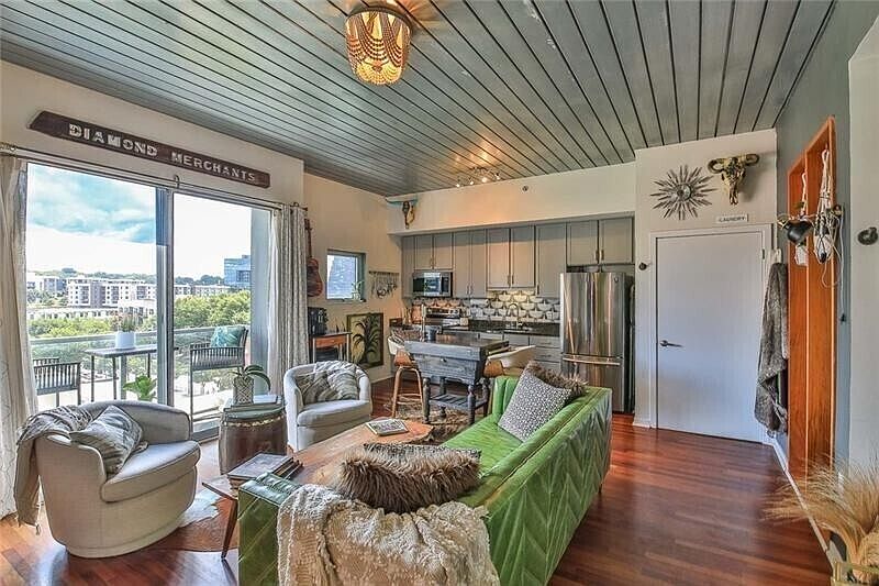 Need chic on a realistic budget? Consider it done! Boast the best views in the building from this top floor, middle unit and its private outdoor patio space. Enjoy invigorating morning sunrises and shaded city evenings on the balcony, soaking up all the vibrancy and convenience of the Old Fourth Ward district in energetic Midtown. Notice the high ceilings, new stainless appliances, as well as a large, updated bathroom and warm hardwoods that are unique to this property. Enjoy the natural light, open concept living/dining/kitchen and spacious owner's suite with closet space! This home is dialed in, all you need are the keys! No car? No problem! You are literally steps away from Ponce City Market, City Winery, the Beltline, Whole Foods, and all of the shopping, dining, boutique hotels, and entertainment that comes with being a part of one of Atlanta's hottest areas. But, just in case, you still do have a covered, gated parking space that is just yours! Looking for an investment? This is it! The only rental restriction is the lease needs to be at 6+ months! You can live in, or immediately rent out, this smart and indulgent use of space that features everything an Atlanta city lover wants! And amenities? You know it! For a low HOA amount, this building features a private gym, meeting space, gated and covered parking garage, included internet, and Ruby Chow's restaurant by the beautiful fountain courtyard.