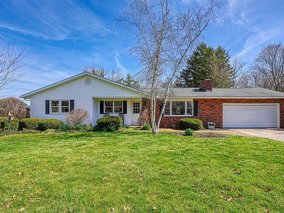 Discover the epitome of modern comfort in this charming ranch home nestled on a .427 acre lot backing up to a small stream. Boasting 2183 sq ft of living space, three bedrooms, two and one-half updated bathrooms. This home offers the perfect blend of style and functionality. Inside, a spacious living area with woodturning fireplace flowing seamlessly into a well-appointed kitchen. Plenty of counter space with beautiful cabinets and fantastic appliances, adjoining the dining area and eat-in kitchen space. Retreat to the private bedrooms, including a master suite with ensuite bath. The partially finished basement offers a versatile rec area, office space and lots of room for storage. Outside, enjoy the expansive yard with patio and storage shed. Don't miss out on this rare gem!!
