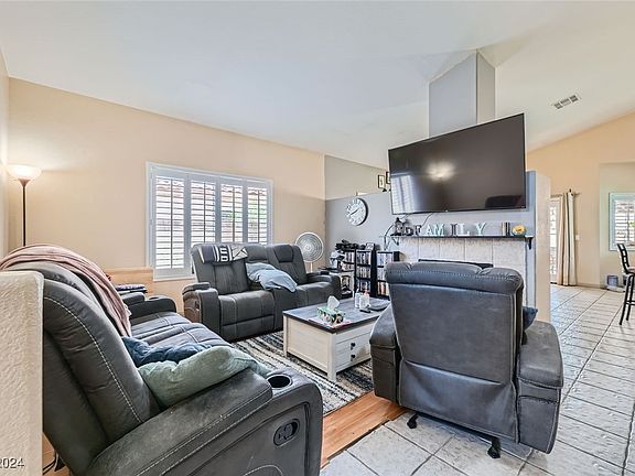 Fabulous 4 bedroom, Single-story home with Private Pool and large driveway. This home includes an Open floorplan, living room, dining room, and family room all off of the kitchen. Vaulted ceilings in every room, tile and wood laminate flooring throughout, and a fireplace in the living room. Large kitchen including granite counters with bar peninsula, additional counter space added to the kitchen, lots of cabinet storage, and stainless steel appliances. The Primary bedroom is separate from the others including a large walk-in closet and French doors out to the pool. Primary bath features separate dual sinks, shower, tub, and toilet room. Front has patio area as well as the backyard with a large patio cover, pool and raised planter bed. There is also a Lifetime storage shed in the oversized side yard. South Valley Ranch community has lots of sidewalks and a park and low HOA fees. This home is a must see!