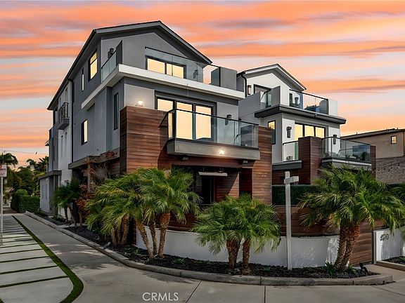 Beautifully designed tri-level beach home, perfectly set on a sunny, oversized corner lot just minutes from the sand and the lively heart of Downtown Huntington Beach. This sophisticated home built in 2021 spans over 3,300 square feet of thoughtfully curated living space and features a private elevator for effortless access to all levels. Bathed in natural light from expansive windows, the open-concept main level exudes warmth and elegance, enhanced by recessed lighting, high ceilings, a sleek cozy fireplace with integrated surround sound and oversized bi-fold patio doors open to an exceptional outdoor sanctuary, creating an ideal setting for indoor/outdoor year-round entertaining. The dining area, featuring a built-in wine display, seamlessly flows into the chef’s kitchen, appointed with premium Wolf stainless steel appliances, a spacious walk-in pantry, and a center preparation island with bar seating. The second level offers a versatile media or bonus room (easily converted to 4th bedroom), alongside two large bedrooms, including a primary suite designed for ultimate retreat living. The 3rd level features a second primary suite with a dedicated seating area with a built-in desk, a spa-inspired bath with dual vanities, soaking tub, walk-in shower, and a custom-designed walk-in closet. Each additional bedroom offers generous proportions and refined finishes. As well as a office perfect for a lounge, home office, or 5th bedroom, with an attached half bath, with direct access to expansive rooftop decks that elevate the indoor-outdoor experience. The 2 car garage is fully finished with epoxy flooring and built-in storage. Additional appointments include solar panels, 1st & 3rd floor ductless HVAC, 2nd floor individual climate control per room, automated blinds, tinted windows, a Savant smart home system, and Ring security cameras. This residence masterfully combines modern coastal sophistication, convenience, and refined luxury living in one unparalleled package all just a short walk to the beach, downtown Huntington Beach, the pier, Pacific City and more!