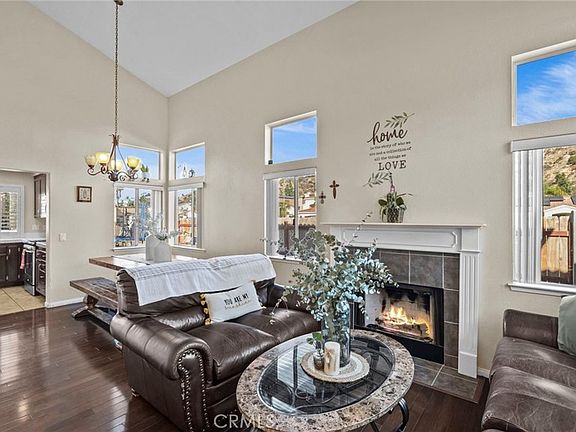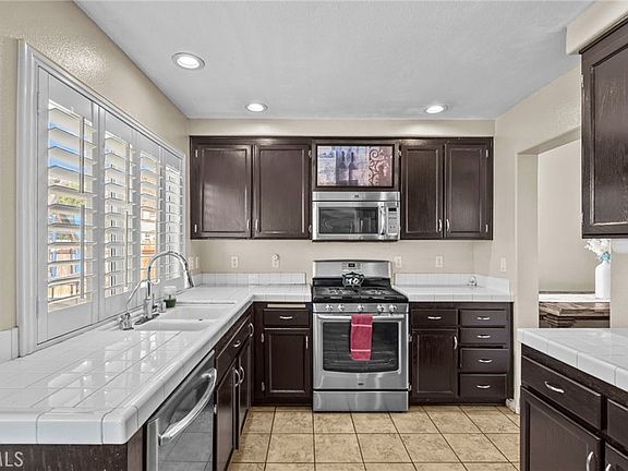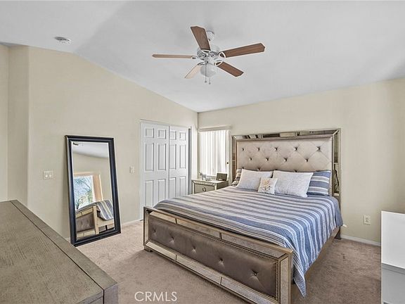 Welcome to this charming 4-bedroom, 3-bathroom home that offers both comfort and convenience. Located on a desirable corner lot, this residence features a well-designed floor plan with plenty of living space. As you enter, you'll be greeted by soaring high ceilings and a spacious living area perfect for entertaining. The home boasts two family rooms, providing ample room for relaxation or hosting guests. One of the four bedrooms is conveniently located on the ground floor, ideal for guests or multi-generational living. The large master suite is a true retreat, complete with a walk-in closet, offering plenty of storage space. The bedroom areas are equipped with ceiling fans, ensuring comfort throughout the home. The cozy fireplace in the main living area provides warmth and ambiance, perfect for those cooler evenings. The kitchen is designed with both form and function in mind, featuring tile countertops, ample cabinetry, and an open layout that flows seamlessly into the family rooms. Recessed lighting in the kitchen area adds a modern touch, highlighting the space with warm, ambient light. Flooring throughout the home includes a mix of carpet, tile, and laminate, providing durability and easy maintenance. But that's not all.. there is more- Outside, the property is just as impressive with an oversized driveway and a wrap-around backyard that offers plenty of space for outdoor family gatherings, barbecues, or just enjoying the fresh air. The backyard also features fruit trees, A 3-car garage and wood fencing provide both convenience and privacy."Bring Your RV! Plenty of Space for Parking & Storage". Additionally, Whole House Water Filtration System. *Solar system. This home is just a short distance from shopping centers and offers easy access to freeways.