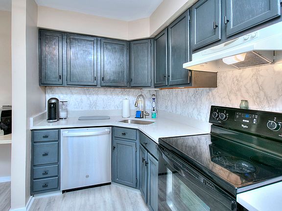 Spacious and sun-filled, this inviting townhome offers an ideal blend of comfort and functionality. The main level features soaring ceilings and an open layout, with a generous living and dining area that flows seamlessly to a private deck-perfect for relaxing or entertaining. The eat-in kitchen is outfitted with quartz countertops and ample cabinetry, while a convenient half bath rounds out the first floor. Upstairs, you'll find two well-sized bedrooms, a full bath, and a laundry area with a washer and dryer thoughtfully located on the second floor. The finished lower level adds versatility with a wet bar and flexible space that could serve as a home office, gym, or rec room. There's also a utility room providing additional storage. Additional highlights include natural gas heating, central air, and two assigned parking spaces. Please note: no pets allowed. The tenant pays for all utilities, gas heat, water and liability insurance required.