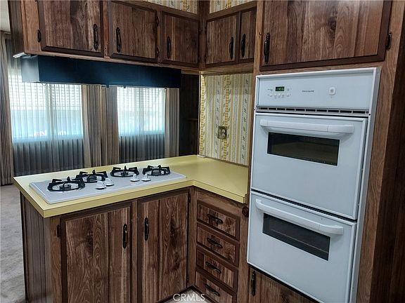This is a spacious, clean mobile with much to offer for a very affordable price! Open floorplan, great layout. It features 2 bedrooms, 2 baths, inside laundry room, family room, wet bar, living room and breakfast/office area. It has dark, wood paneled walls throughout but with a little paint you can make it fabulous. The kitchen has upgraded appliances and recessed lighting. The windows are all upgraded to new dual pane windows. The air conditioner has also be upgraded. It is located in a resort like, senior community with a lake, fishing, a community pool and spa, billiard room, clubhouse, library and gym.