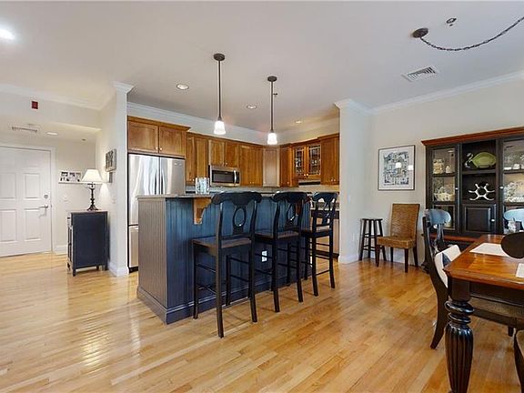 Pristine upper level townhouse style condo in the heart of Main St. East Greenwich. Seconds to every imaginable amenity EG has to offer, this modern, bright condo offers a peaceful respite from the bustle of the town. Walk in to your main entrance into an open kitchen/living/dining area, and a private hallway to 1/2 bath on main level. You'll love the silestone counters, especially on the kitchen island with wrap around bar. The gas fireplace in the corner is visible from all points and welcoming in all seasons. Up the stairs are two large bedrooms, including a master with private bath, cathedral ceiling, floor to ceiling window nook and huge walk in closet. One of the best condo values available in EG today. Moving from a larger place? - wait til you see the basement storage unit / studio! Why drive when you can have all of downtown at your fingertips?! Call today.