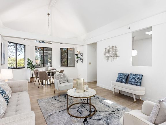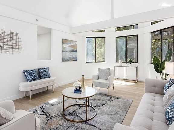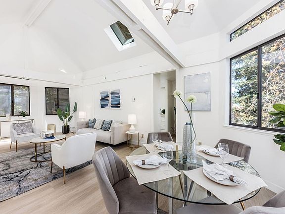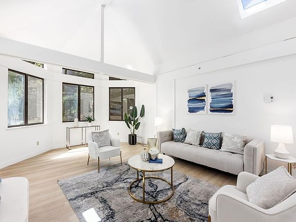 This spacious 2-bedroom townhome is a sanctuary nestled among redwoods, offering a blend of serenity, Silicon Valley vibrancy, sought after good schools in MV-LA area (Buyers to verify eligibility), mere blocks from the bustling Downtown Mountain View. The residence showcases a reverse floor plan that emphasizes the spaciousness of the living areas through vaulted ceilings and expansive windows, flooding the interior with bright natural light, recently enhanced by new luxury vinyl floors, a fresh coat of paint, and updated countertops. Its large, beautifully landscaped garden stands out, providing a rare, expansive outdoor space that complements the modern and comfortable interior. The master suite is a private retreat with ample closet space and views of the secluded backyard. Practical amenities include an in-house laundry, a 1-car detached garage, and an additional parking space, ensuring convenience and comfort for its residents. This incredible location offers unparalleled easy access to numerous giant tech hubs, parks, grocery stores, restaurants and all other major public transportations like Caltrain, highway 101/237/85 and express way. Dont miss the opportunity to own this lovely home in an excellent location.