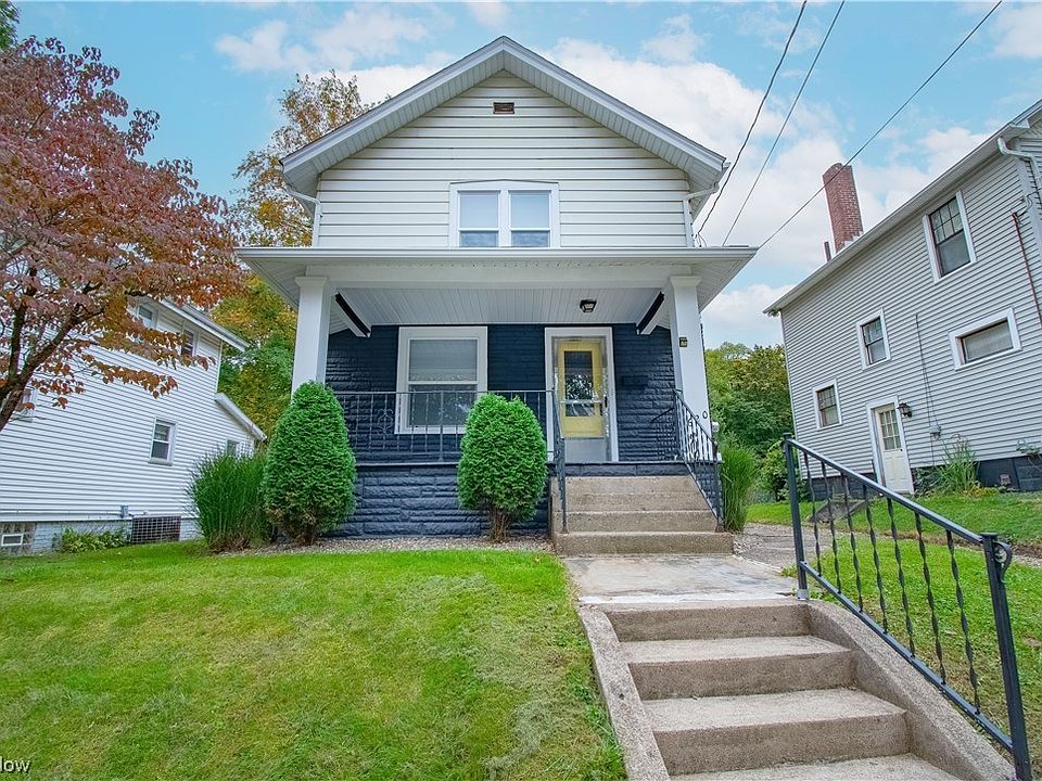 Charming Century home with updated, bright, and airy living space. You will love this historic home with character throughout. A covered front porch perfect for enjoying the cool Fall mornings welcomes you to this beautiful home. The cozy great room has arched doorways and an abundance of natural light. Open to the great room is the dining room with a brick accent wall and a modern hanging light. The kitchen features a tile backsplash, a double-sided stainless steel sink, a convenient moving cabinet for easy access to the basement, and an enclosed back entryway. The large deck overlooks the backyard perfect for entertaining friends and family. Two generous bedrooms one with built-in- storage are located on the second floor. A full bathroom with brick accents, a tub shower combo, and a convenient linen closet completes the second floor. The unfinished full basement offers ample storage space, a laundry area, a shower, and a workbench. Updates include updated electrical, a new furnace, a new hot water tank, roof, windows, cornhole pits, composite deck, and bathtub & surround. Call today for your private showing!
