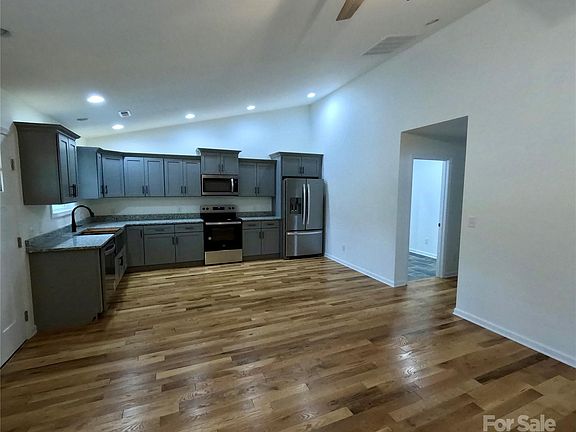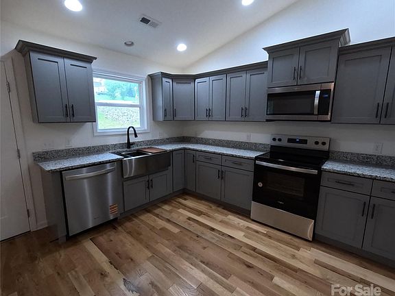 This new home boasts an open floor plan with a vaulted ceiling in the living and kitchen areas, granite countertops throughout with soft-close hardwood cabinets, a farmhouse sink, and real hardwood floors! The primary bedroom offers a walk-in closet, double-sink vanity, and a tiled shower with a bench.