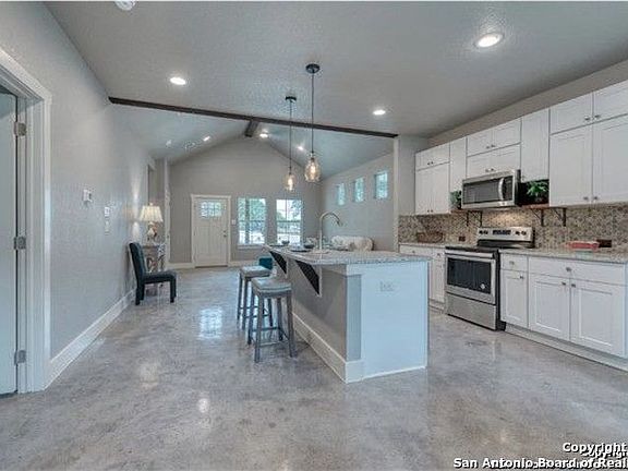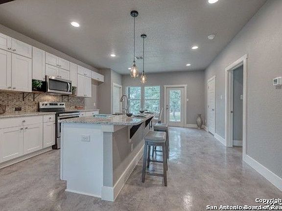 Move in ready absolutely charming single story home. The open floor plan has high ceilings, granite kitchen countertops with glass tiled back-splash, an oversized walk-in pantry, separate breakfast/dining area and island/bar. Easy care and durable stained concrete flooring. Primary suite has an exceptionally large closet & bath with an oversized walk-in shower. New roof November 2023. Convenient to dining and shopping with desirable hill country privacy. Covered front & back patio, 2 minutes to the boat ramp.