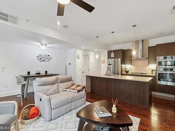 Looking for ease of living, modern finishes, and your own covered garage parking space? A rare find in a fantastic neighborhood - this impeccably designed condo is offered for rent with one car garage parking included in the rent. Also available fully furnished if desired, or landlord will remove furnishings. Situated in Six20, a quiet boutique condominium building of only nine residences on 3rd Street in Northern Liberties, this two bedroom condominium was designed to maximize space and comfort. Enter into a secured mail room for ease of package delivery. Take the elevator up to find your 2 bedroom, 2 full bath residence, offering nearly 1,000 square feet of living space. Access both the building and the unit with seamless keyless entry, and step into your open concept living and dining room, complete with a charming balcony to sip your morning coffee or unwind in the evening, with floor to ceiling french doors and windows with custom blinds, filling the space with natural light. The first bedroom offers ample room for a queen or king size bed and features an ensuite full bath with tiled shower, as well as a hidden laundry chute offering convenient access from the hall, where your own in-unit washer and dryer are located. Second bedroom, furnished as an office/guest room, has a wall of custom designer closet build-out for storage, and features a couch with pull-out bed and desk. Hall bath is an additional full bath, with a modern bathtub shower combination. Chef's kitchen is designed to enjoy and entertain - find convenient bar seating at your waterfall island, gas cooking, and a full suite of stainless steel appliances. Living room area has a beautiful flow, perfect for entertaining and enjoying. All hardwood floors throughout, efficient central heating and cooling with energy efficient thermostat for regulating utility costs, as well as custom blinds throughout to keep the unit cool in the warmer months. Take the elevator up 2 floors up to find a fully furnished roof deck, perfect for entertaining and enjoying 360 skyline and bridge views - fireworks in every direction when the city is celebrating. Garage features remote control entry and your own dedicated covered end parking spot - fits sedans as well as SUVs with ease. Building has private trash collection service for ultimate convenience. Walk to everything this fantastic neighborhood has to offer - local coffee shop Higher Grounds across the street, hotspot Yanaga Kappo Izakaya on the corner, community center and pool, neighborhood favorites like North Third, Bar 1010, Seiko Sushi, CNT Cafe, Pietramala, and Joy Cafe - all within just a block walk! Nearby Giant Heirloom market, a brand new Sprouts grocery store, just opened Amazon Fresh, Target, and local markets for groceries, and farmers markets in the park. A fantastic residence in a lovely, walkable neighborhood. The best city living has to offer! Flexible move in date: available for as soon as very tail end of September move in, anytime in October, or for November 1st.