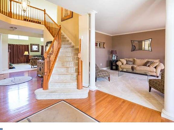 A stunning Home, thoughtfully upgraded through out and meticulously maintained. Premium lot backs to Open Space. New Trex Deck with built in lighting and Brick Patio for outdoor enjoyment. Spacious rooms, Center Hall with hardwood floors on first floor 9 plus foot ceilings, Two bay windows, two story family room with two sided gas fireplace. Breakfast room with deck access through sliding doors. Upgraded maple kitchen cabinets with under cabinet lighting, upgraded appliances, center island and breakfast bar. Granite countertops, tile backsplash, recess lighting and upgraded light fixtures throughout. Two staircases. Upper level with open balcony, princess suite with full tile bath and walk in closet, two private large bedrooms with shared bath. Tremendous Master Bedroom with sitting room, French doors, two walk in closets and fully upgraded tile Master Bath with Jacuzzi tub and separate water closet and two upgraded vanities. Brick front, two car garage, unlimited possibilities in the unfinished full basement, portico entrance and the list goes on. Don't hesitate in making this your next home.