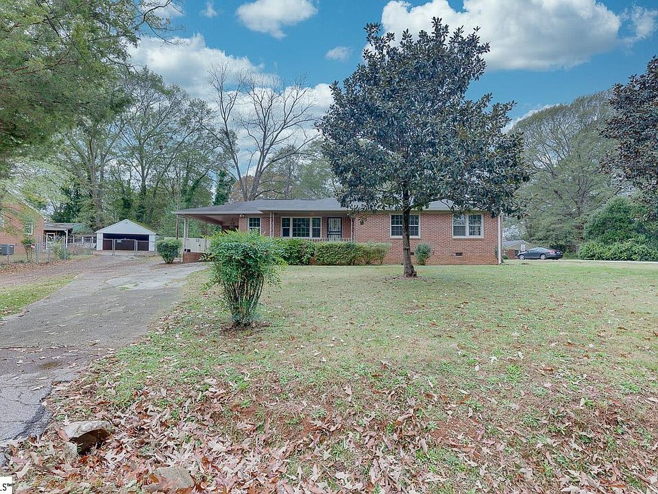 Hard to find 4 bed/2 bath all brick ranch home on a corner lot! This home has been renovated and is move in ready! The large front porch sets the stage as you enter the home. The Living Room is full of sunlight and features a charming built-in bookcase on one end, and glass pane doors that lead to the kitchen on one side and the bedrooms on the other. The kitchen comes with a full appliance package and has plenty of space to prep, cook, and store all your kitchen goodies. There is a friends and family door off the kitchen that accesses the carport and makes bringing those weekly groceries in a breeze! Down the back hall you will find the first of 4 bedrooms. This bedroom is separate from the others making it a great option for a teenager, home office or playroom if needed. The large windows overlook the backyard, and there is already a built-in desk and bookshelf! The other two secondary bedrooms are down the main hall, and all three of these bedrooms share a spacious hall bath with fabulous retro tile! The master bedroom is at the end of the main hall and has its own private attached bath. You will also find the walk-in laundry room centrally located for convenience. Storage is not an issue in this home, as every possible nook and cranny has either a closet or built-in shelving-not only for storage, but to display your special treasures! The backyard is HUGE and fully fenced offering plenty of room for a playset, gardens and more. There is additional parking in the backyard, as well as patio space and a locked storage room just off the carport. Located just minutes from shopping, dining, medical facilities and interstate access, and zoned for strong schools, this home is a rare find that won’t last long. Let’s get you home for the holidays!
