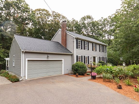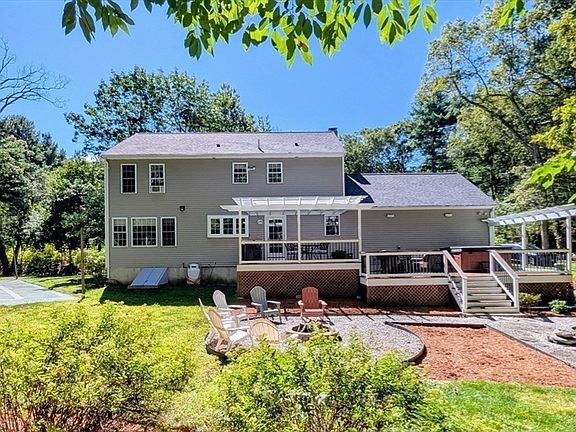 Fresh style, smart updates, and resort-style outdoor living in this 4-bedroom, 2.5-bath Colonial with new central AC, new furnace, new roof! Dark-stained hardwoods, crisp white trim, and fresh neutral paint set the tone. The new center island kitchen shines with white custom cabinets, quartz counters, tile backsplash, 35 inch undermount sink, coffee bar cabinet with glass fronts, extra-wide powered drawers, induction range, and exterior-vented hood. The front-to-back primary suite features a walk-in closet w/ custom organizers and a spa-like bath w/ quartz double vanity, walk-in tile shower, and heated vent. Three more bedrooms and sleek updated 2nd bath complete the second flr. Step outside to an entertainer’s dream: multi-tiered deck with hot tub, pergola & custom lighting, also a fire pit & fountain. 30' x 60' sports court is ready for pickleball, basketball, or winter ice hockey. Propane hookup for your grill makes gatherings easy.