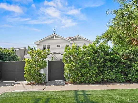 A True Designer Showcase – Coronado Dream Home. Just two blocks from the golf course, this stunning 4-bedroom + office, 5-bath residence blends modern comfort with timeless character. Recently remodeled with meticulous attention to detail, every element of this custom home exudes peaceful and understated sophistication. Featuring a 16th-century imported French fireplace, sleek Italian induction stove, custom cabinetry and doors, and iron barn-style doors with fluted glass. A cantina window connects the kitchen to the front patio for seamless entertaining. Standout amenities include Hunter Douglas window coverings, Sonos 6-zone surround sound, radiant heated floors, a Tesla solar system with car charger, outdoor shower, and so much more. Step outside to a serene front and backyard retreat featuring a custom Mulholland pergola, front gate and garage door, plus avocado, citrus trees, grapevines, and your very own meditation garden— creating a private paradise that’s truly one of a kind.