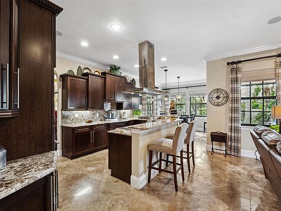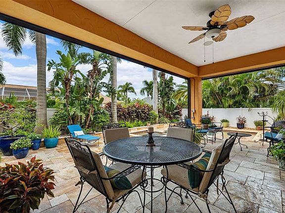 Welcome to your dream home in the beautiful island community of Tierra Verde! This stunning 4-bedroom, 4-bathroom residence spans 4,414 SF and boasts luxurious features that will captivate even the most discerning buyers. As you step into this remarkable home, you are greeted by an impressive 25 ft cathedral entryway, setting the tone for the grandeur that awaits. The enviable gourmet kitchen is a chef's delight, equipped with top-of-the-line stainless steel Jennaire appliances, including a 6-burner gas cooktop and a built-in refrigerator. The gorgeous custom solid wood cabinetry is completed with exquisite granite countertops and 2 breakfast bars, overlooking the casual dining area and family room with a cozy fireplace and coordinating wet bar with wine refrigeration and an ice maker. This versatile floor plan offers a first-floor guest suite, formal living and dining rooms, a home office with custom built-ins, and a beautiful home theater. Upstairs, the spacious primary suite awaits, featuring 2 walk-in closets and a luxurious en-suite bath with separate soaking tub and walk-in shower, along with ample additional storage features and warm stone finishes. Additionally, there are two other bedrooms and baths, as well as a sun room with lots of windows for natural light and a new travertine deck, perfect for soaking up the Florida sun. The top floor hosts a fun wet bar area with a rooftop covered lookout, ideal for enjoying the balmy breezes and sneak peeks of the water and lush tropical landscape. The spacious lot (.21 acre) offers a fabulous pool and spa with a travertine deck, surrounded by mature tropical landscaping, as well as a wonderful covered lanai with new (2023) retractable screens. This impressive home offers exquisite finishes throughout, including polished travertine and rich hardwood flooring, crown moldings, hurricane windows, and an oversized 3-car garage with excellent built-in storage and epoxy flooring. Tierra Verde is an island community where you will feel like you are living on vacation year-round, near Florida's finest white sand beaches, Fort DeSoto Park, and a short drive to downtown St. Petersburg. Don't miss the opportunity to make this extraordinary residence your own and experience the ultimate in luxury island living.