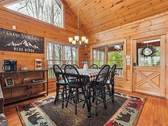 **Home is occupied, and shown by Appointment Only** Beautiful mountain home, with perhaps the most amazing views in all of Blue Ridge! Lovely log construction features sweeping long range mountain vistas from every vantage point, nestled on over two acres! Only minutes from Downtown Blue Ridge, Bear Claw Vineyard & Winery, and Mercier Apple Orchards. From the moment you walk through the door it feels like vacation, whether you use this home as a weekend get away, for rental income, or as your full time residence! This stunning three-level home features the Primary Suite with a private balcony deck; the upstairs loft area makes a perfect office area, but previously was used as another spot for a double bed or two twin beds, should a fourth sleeping area be desired. Another bedroom & full bath are on the main level, and a third bedroom and full bath are on the terrace level with walk out access to the pet-friendly, fenced backyard. Cozy up on cool nights with a mug of hot cocoa at one of the two fireplaces, or roast marshmallows under the stars at the backyard firepit. A glass of wine in the hot tub or on one of the upper decks taking in the long-range mountain views is also a great way to spend an evening! Recent home upgrades include new tankless hot water heater for never-ending hot water, commercial water filtration system, HVAC system updates with new furnace and new smart wifi-enabled thermostats, wireless security system with cameras for remote monitoring, backyard fencing and new fire pit area, gas logs for terrace level, new gutters/gutter guards, newer gravel driveway, newer stainless appliances, updated furnishings and linens. Home is being sold fully furnished, with very few exceptions. Completely turnkey, and no HOA! Well water & on-site propane keep monthly utility costs low! There is plenty of room on the spacious, two-acre lot to build a carport or detached garage, if desired. Square footage is approximate, as based on the tax records for combined above grade & finished terrace level. Come see this amazing home today, the mountains are calling! Access Instructions: There are two ways in and out, one is paved and the other is gravel. GPS will try to route via the gravel way, but this option requires a 4x4 and is not recommended. The paved option is best for easy access: Tennis Ct Rd/Sunrock Mtn Rd/Cohutta Overlook Dr/Cohutta Overlook Trail/Price Rd/Home on Left
