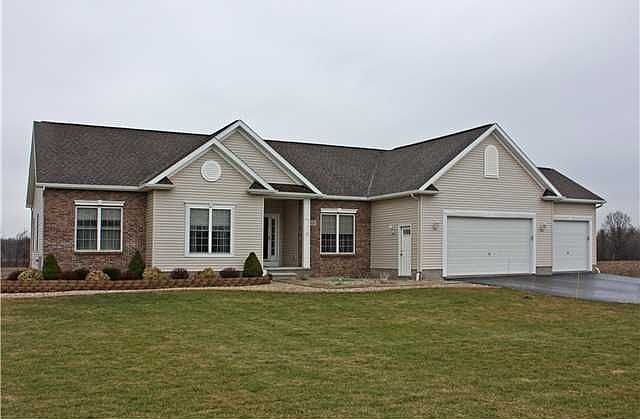 Spectacular 2003 Wallco built country ranch,80k in extras since construction include 3car blacktop driveway,whole house emergency generator,deck,shed,alarm system,professional lawn care,deluxe window treatments.Central air to keep you nice and cool,home is located minutes to I490 and I90..headed east or west Buffalo or Rochester your good here.Open floor plan with loads of windows makes for a bright cheery disposition!! Family room has Majestic Vermont casting gas fireplace. I dare say plenty of room in the master walk-in closet. Quick possession ok.