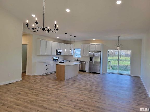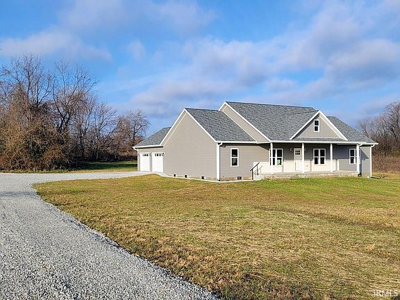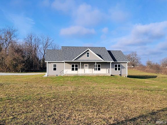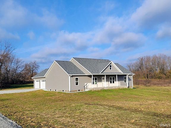Discover the perfect blend of peaceful country living and city conveniences in this stunning new construction home situated on 3.7+/- acres. With thoughtful design, premium finishes, and a commuter-friendly location near Highways 60 and 37, this property is the ideal retreat for modern living. Step onto the welcoming 8x34 covered front porch, a perfect spot to enjoy serene views and your morning coffee. Inside, the spacious living room boasts a vaulted ceiling, creating an open and inviting atmosphere. The kitchen features quartz countertops, extended-height cabinets, a large kitchen island, GE appliances, and a roomy walk-in pantry. There is a spacious mudroom, laundry room and half bath right off the attached two car garage. The open floorplan is ideal for both entertaining and family living, while the split-bedroom layout ensures privacy. Step out onto the 8x24 deck, which opens to the expansive backyard, offering endless possibilities for outdoor activities or future customization. The primary suite is a true retreat with a huge walk-in closet and an ensuite bath complete with dual vanities. Throughout the home, nine-foot ceilings add an extra sense of openness and elegance. With city water and sewer services, this home combines the best of country living with modern conveniences. Its location near major highways makes commuting a breeze. This home offers it all—space, style, and convenience. Don’t miss the opportunity to make it yours! Seller is related to the listing agent.