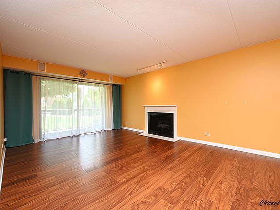Welcome to this beautifully maintained 2-bedroom, 2-bathroom first-floor end unit condo located next to White Pines Golf Course! This bright and spacious home features a large living room with a cozy gas fireplace and sliding doors that open to a 20-foot private balcony - perfect for relaxing or entertaining. The eat-in kitchen also offers balcony access, making it an ideal space for morning coffee or evening gatherings. The primary suite boasts a walk-in closet and a full private bath. Enjoy the warmth of laminate flooring throughout, central A/C, and a new water heater (2024) with a newer A/C unit (2020). Additional perks include two assigned parking spaces, guest parking near the golf course gate, and laundry plus storage on the same floor. Conveniently located near shopping, dining, and the Metra train. Water, gas, and exterior maintenance are included in the assessment. A perfect blend of comfort and convenience - schedule your showing today! Multiple offers received. Highest and best due by Monday (07/21/25) at 12PM
